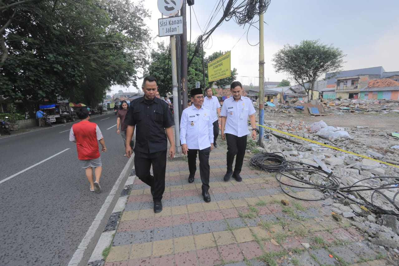 Kota Tangerang – Wali Kota Tangerang, H. Sachrudin didampingi Camat Tangerang, Yudi Pradana meninjau lahan bekas Pasar Pisang yang para pedagangnya telah direlokasi ke Plaza Shinta.