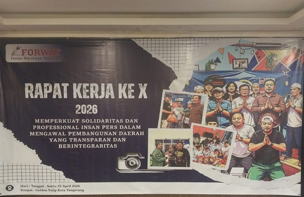Kota Tangerang – Forum Wartawan Tangerang (Forwat) gelar kegiatan rutin tahunan berupa Rapat Kerja Ke-X yang akan digelar hari ini, Sabtu, 25 April 2026 yang berlangsung di Hotel Golden Tulip Essentials, Kota Tangerang.