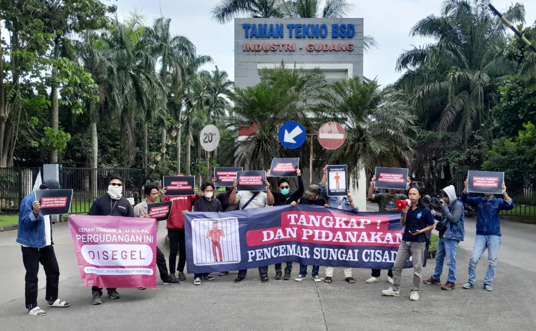 Koalisi Aktivis Lingkungan Hidup Tangerang (Kalung) saat menggelar Aksi Simpatik didepan Pergudangan Taman Tekno BSD Kota Tangerang Selatan. Foto: TangerangPos