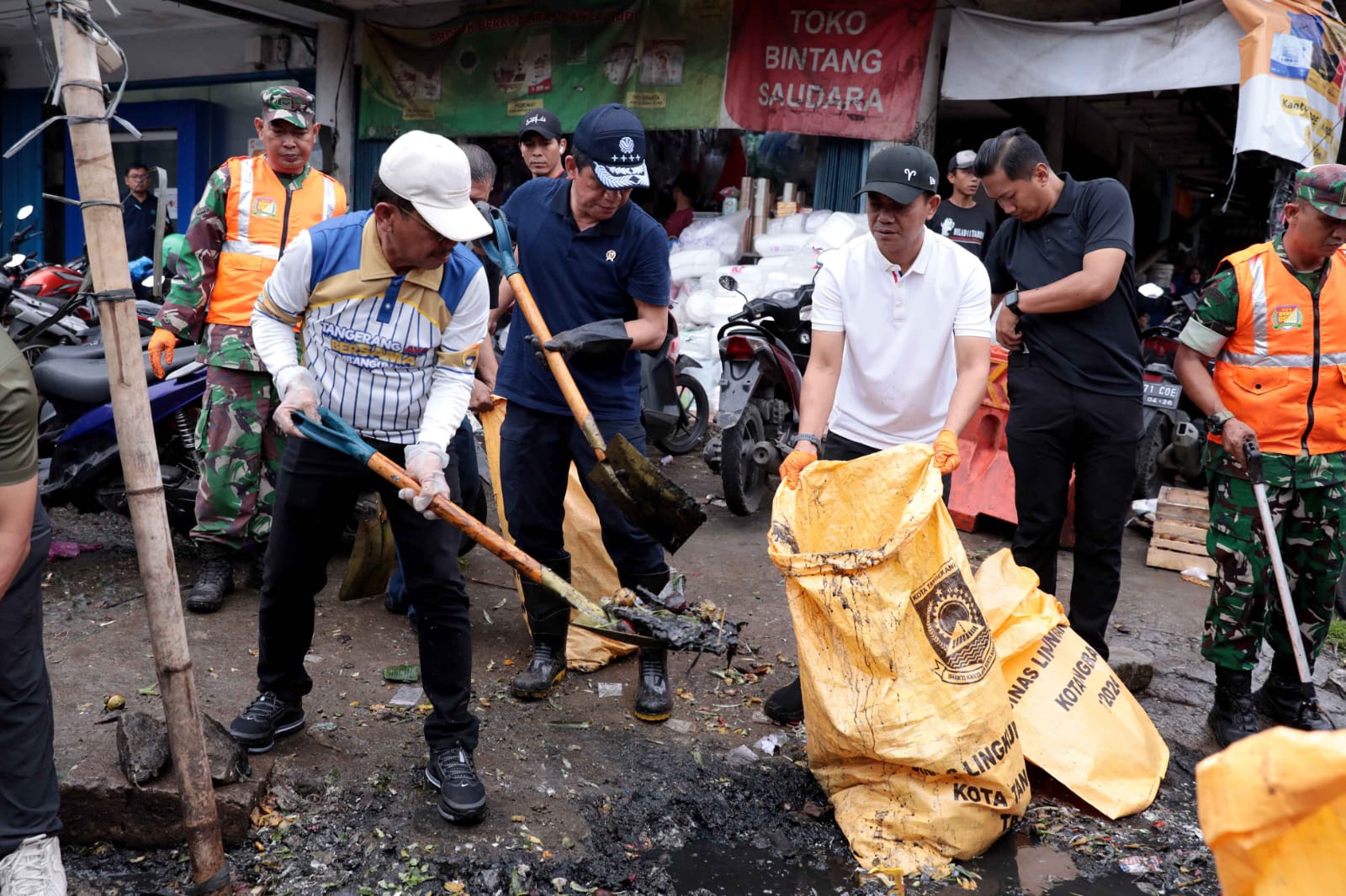 Wali Kota Tangerang, H. Sachrudin, mendampingi Menteri Lingkungan Hidup (LH), Hanif Faisol Nurofiq, dalam kegiatan kurve atau kerja bakti yang melibatkan unsur Forkopimda, jajaran pegawai, serta masyarakat sekitar.