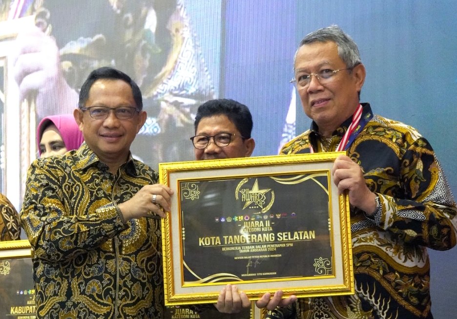 Penghargaan diberikan oleh Menteri Dalam Negeri Tito Karnavian dan diterima langsung oleh Wali Kota Tangerang Selatan Benyamin Davnie di Jakarta.