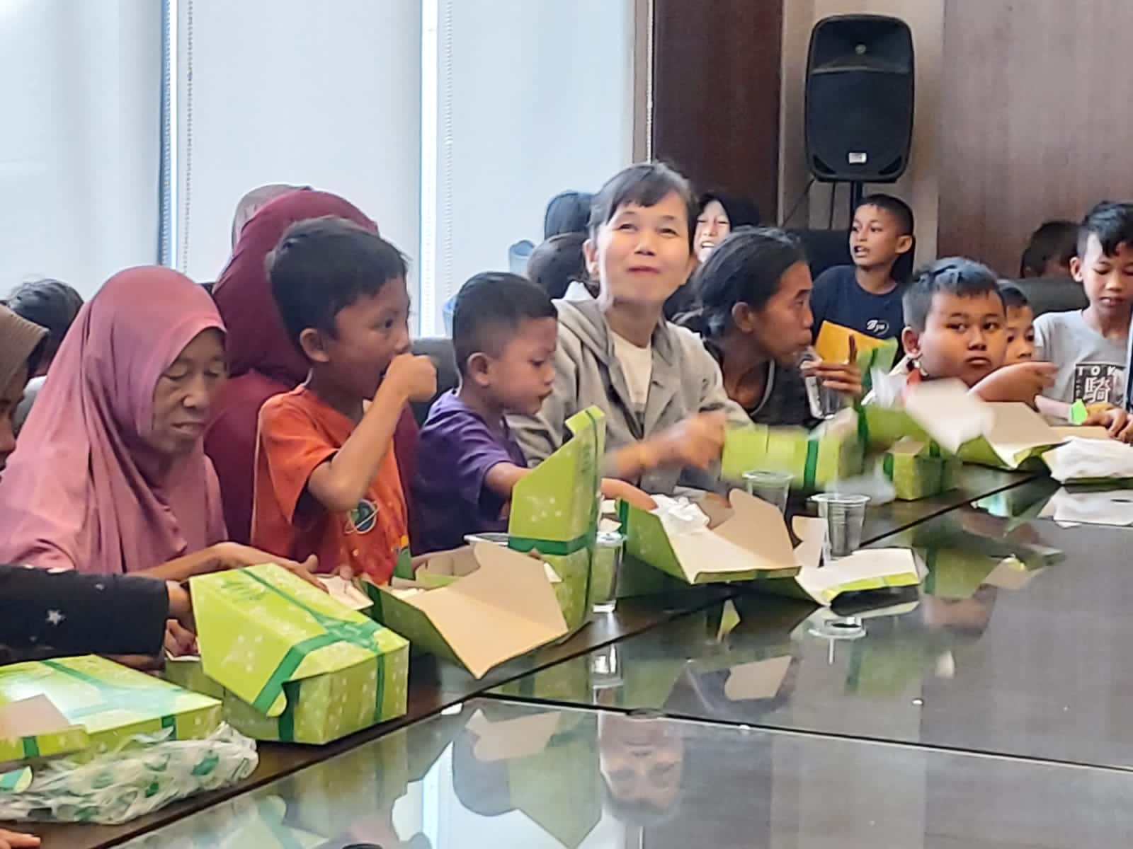 Anak-anak dan Lansia saat Menikmati Makan Ditempat Program Makan Siang Gratis di Kantor DPD Partai Gerindra Provinsi Banten. Foto: TangerangPos